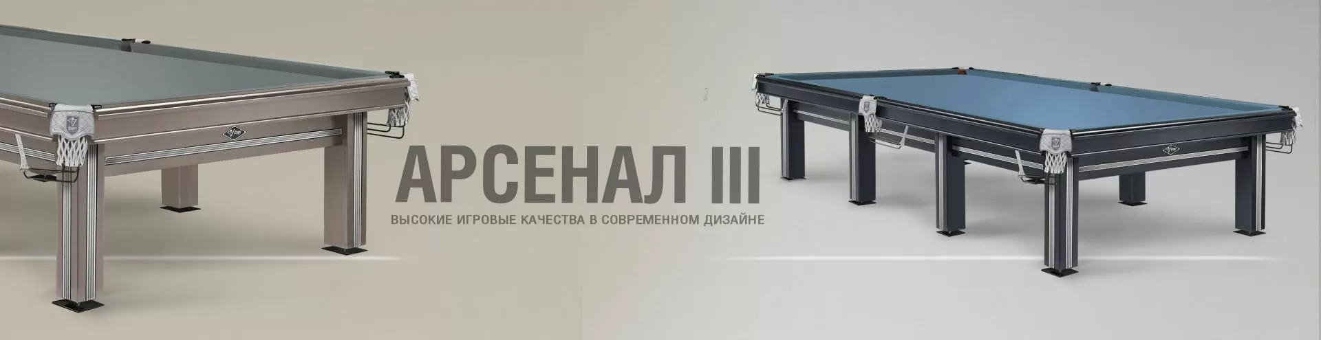 Профессиональный бильярдный стол «Арсенал III» относятся к передовым разработкам Фабрики «Старт» c игровыми характеристиками высокого уровня. Образ стола состоит из четких линий, прямых углов и строгости. Внешняя особенность - ноги прямоугольной формы и современная цветовая палитра. Четкие линии и идеальная геометрия характерны для этого бильярдного стола профессиональной линейки.
