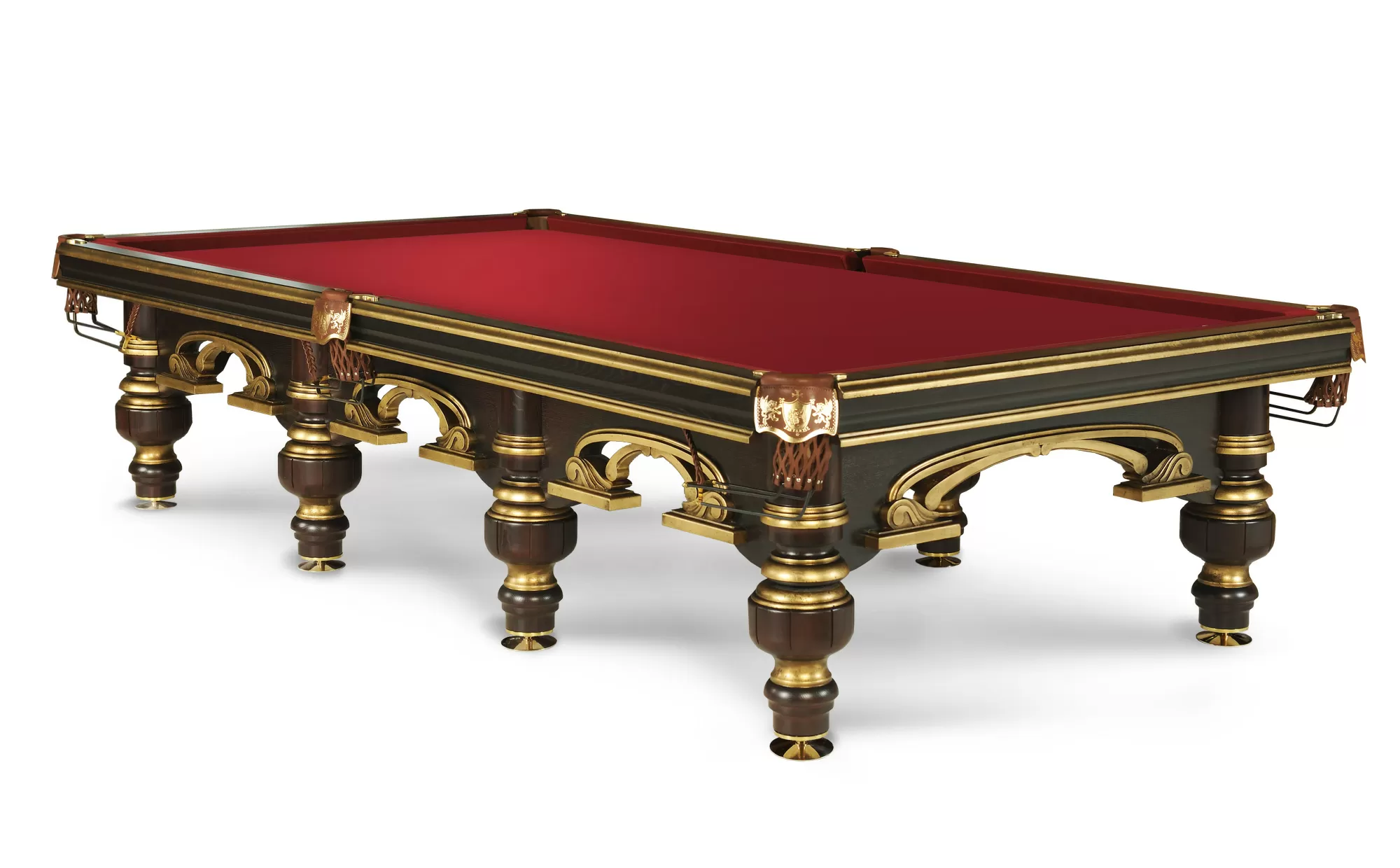 Представитель роскошной элегантности галереи эксклюзивных шедевров «Старт». Стилистика стола «Венеция-Люкс» отражает образ одноименного города, с его пышной архитектурой Эпохи Возрождения. Модель отличает особая роскошь отделки: золотая поталь украшает резной лафет ручной работы и элементы ног, тем самым делает силуэт бильярда выразительным и ярким.